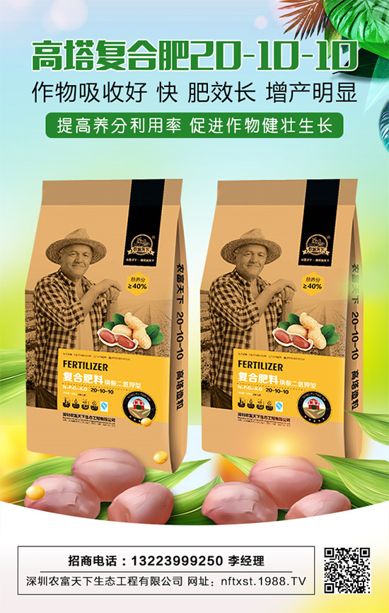 深圳農(nóng)富天下生態(tài)工程有限公司的這款【花生專用復(fù)合肥料20-10-10】采用約旦進(jìn)口鉀肥和國家一等全溶性磷原料生產(chǎn),全水溶、,具有松土、保水功能,作物吸收好,快,肥效長,增產(chǎn)明顯。產(chǎn)品含大量元素氮、磷、鉀、中微量元素鈣、鎂、硫、鋅等融合在一起,供給作物全面、均衡、的養(yǎng)分、顯著提高養(yǎng)分利用率,促進(jìn)作物健壯生長,提高作物的產(chǎn)量和品質(zhì)。