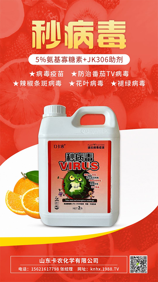 山東卡農(nóng)化學有限公司【秒病毒】鈍化病毒,有效鏟除病毒病,提高植株抗性的作用,降低病毒病發(fā)生幾率。