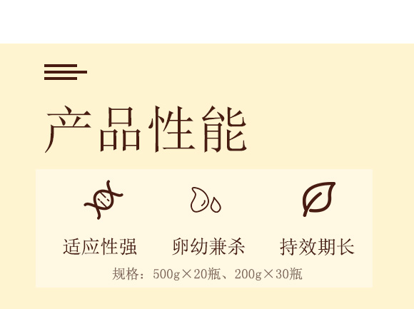 ◆殺螨譜廣、適應(yīng)性強(qiáng):對紅蜘蛛、黃蜘蛛、銹譬虱、茶黃螨、朱砂葉螨和二玫E葉螨等均有很好防效。